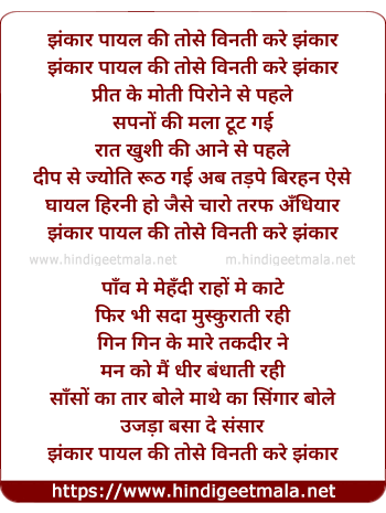 Lyrics of Jhankar Payal Ki Taose Vinti Kare - झंकार पायल की तोसे विनती करे