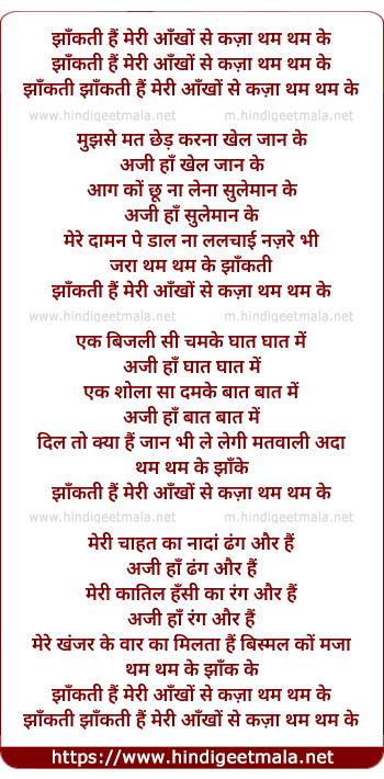 Lyrics of Jhankti Hai Meri Ankho Se Kaza Tham Tham Ke - झाँकती हैं मेरी आँखों से कज़ा थम थम के