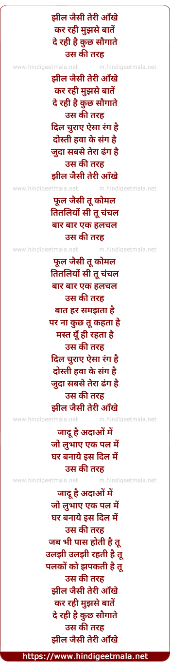 Lyrics of Jheel Jaisi Teri Aankhe - झील जैसी तेरी आँखे
