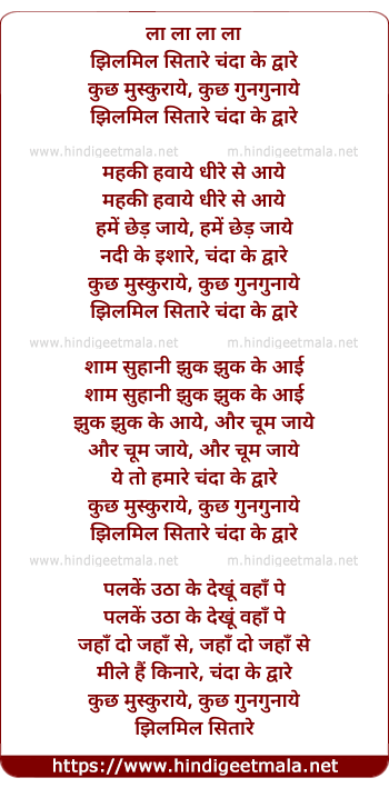 Lyrics of Jhilmil Sitare Chanda Ke Dware - झिलमिल सितारे चंदा के द्वारे