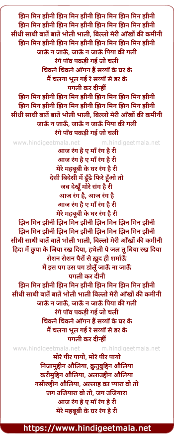 Lyrics of Jhin Min Jhini, Jaaun Na Jaaun Piyaa Ki Gali - झिन मिन झीनी, जाऊं ना जाऊं पिया की गली
