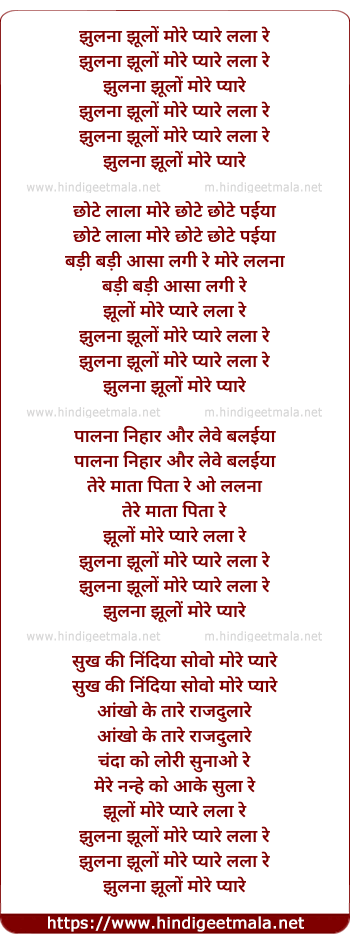 Lyrics of Jhoolna Jhoolo More Pyare Lala Re - झुलना झूलों मोरे प्यारे लला रे