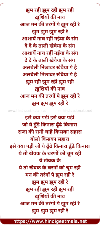 Lyrics of Jhoom Rahi Jhoom Rahi Khushiyo Ki Naav Aaj - झूम रही झूम रही ख़ुशियों की नाव आज