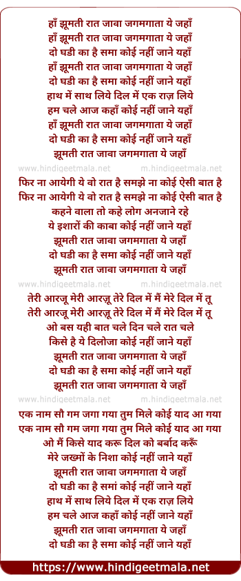 ha jhumti raat jawa jagmagata ye jaha