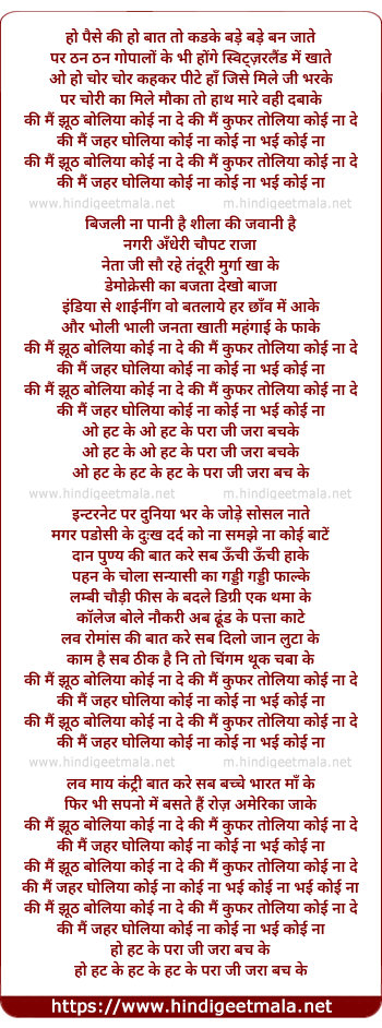 Lyrics of Jhooth Boliya (Remix) - हो पैसे की हो बात तो कडके बड़े बड़े बन जाते