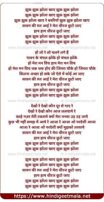 Lyrics of Jhuk Jhuk Jhola Khaye Re Badariya - झुक झुक झोला खाए रे बदरियाँ