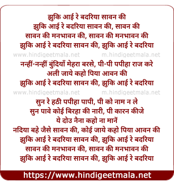 Lyrics of Jhuki Aai Re Badariya Saawan Ki - झुकि आई रे बदरिया सावन की