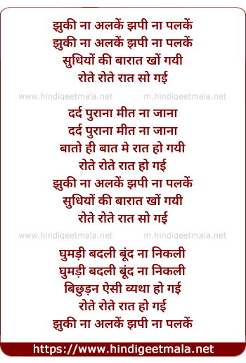 Lyrics of Jhuki Na Alke Jhapi Na Palke - झुकी ना अलकें झपी ना पलकें