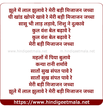 jhule me laal jhulaave re meri badi mijajan jaccha