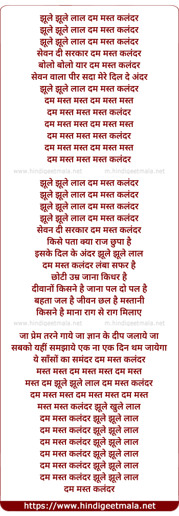 dum mast kalander jhule jhule laal