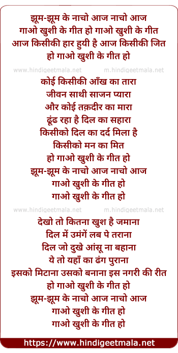 Lyrics of Jhum Jhum Ke Nacho Aaj Nacho Aaj - झूम-झूम के नाचो, आज नाचो आज