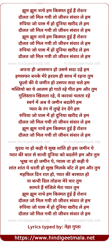 Lyrics of Jhum Jhum Nache Ham - झूम झूम नाचे हम
