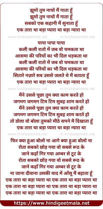 Lyrics of Jhumo Tum Nacho Mai Gata Hu - झूमो तुम नाचो मैं गाता हूँ