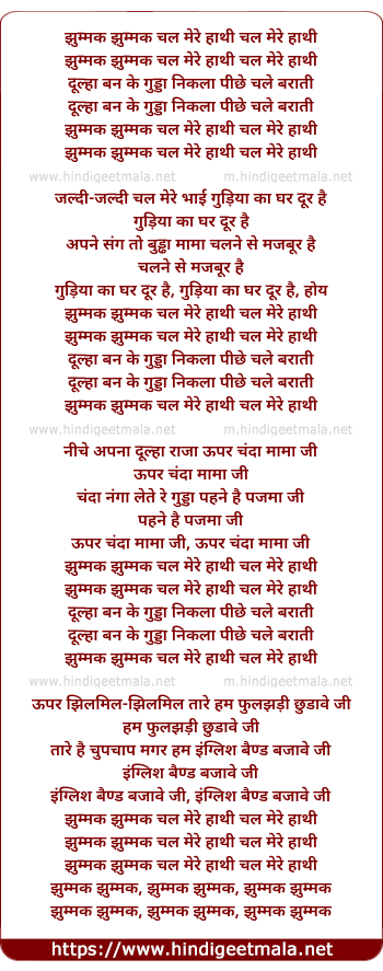 Lyrics of Jhummak Jhummak Chal Mere Haathi - झुम्मक झुम्मक चल मेरे हाथी
