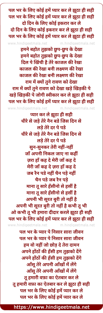 Lyrics of Jhuta Hi Pyar Kar Le - झूठा ही प्यार कर ले