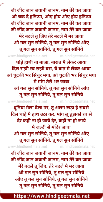 Lyrics of Ji Jind Jaan Javaani Jaanam - जी जिन्द जान जवानी जानम