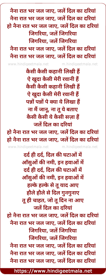 ho naina raat bhar jal jaye, jale dil ka dariya