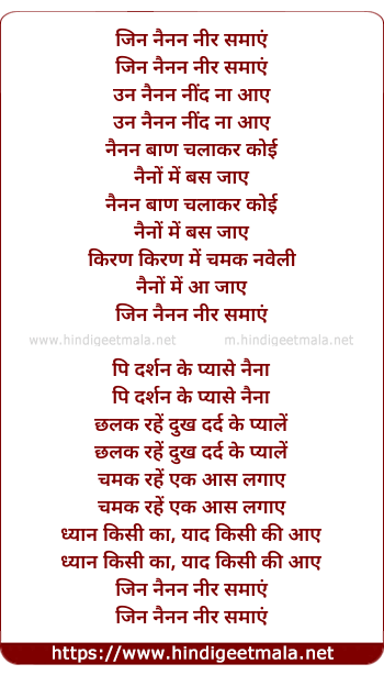 Lyrics of Jin Nainan Neer Samaye - जिन नैनन नीर समाएं