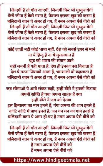Lyrics of Jindagi Hai To Maut Aayegi - जिन्दगी हैं तो मौत आएगी
