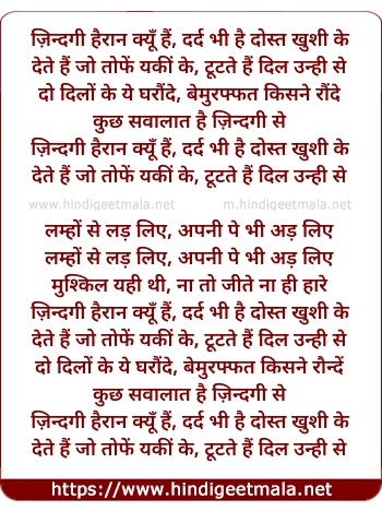 zindagi hairaan kyun hain, dard bhi hain dost khushi ke