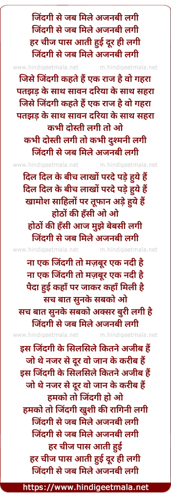 Lyrics of Jindagi Se Jab Mile Ajnabi Lagi - जिंदगी से जब मिले अजनबी लगी