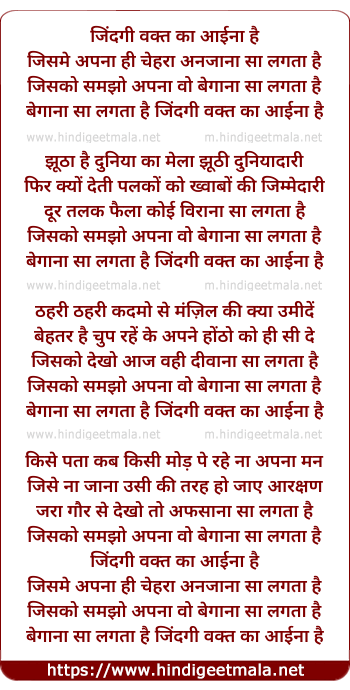 Lyrics of Jindagi Waqt Ka Aaina Hai - जिंदगी वक्त का आईना है