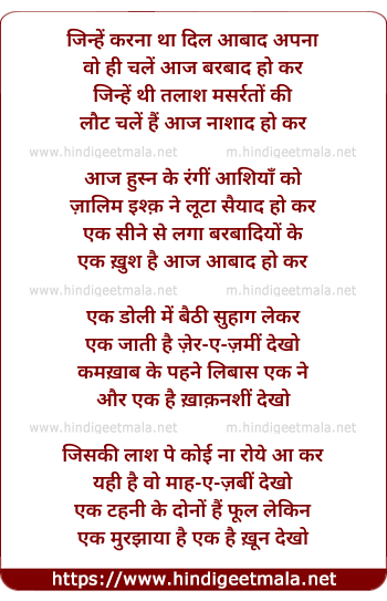 Lyrics of Jinhe Karna Tha Dil Aabad Apna - जिन्हें करना था दिल आबाद अपना