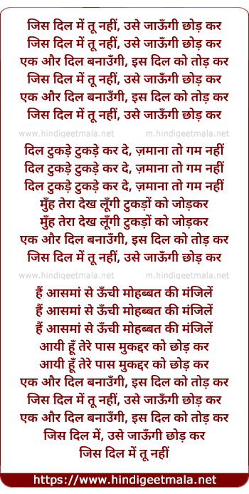 Lyrics of Jis Dil Mein Tu Nahi (Female) - जिस दिल में तू नहीं,