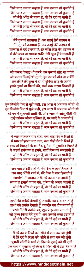 jise pyaar jamaana kahta hain, naam uska to kurbaani hain