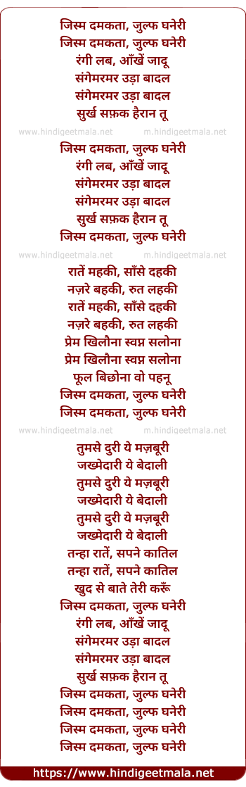 Lyrics of Jism Damakta (Remix 2) - जिस्म दमकता, जुल्फ घनेरी