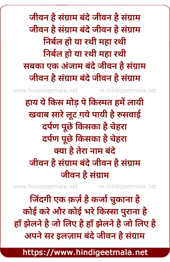 Lyrics of Jivan Hai Sangram Bande - जीवन है संग्राम बंदे