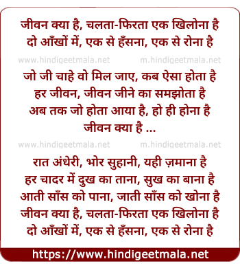 lyrics of song Jivan Kya Hai Chalta Phirta Ek Khilona Hai