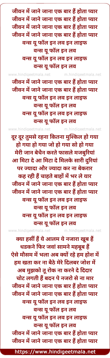 jeevan mein jaane jaana ek baar hai hota pyar, once u fall in love in life.