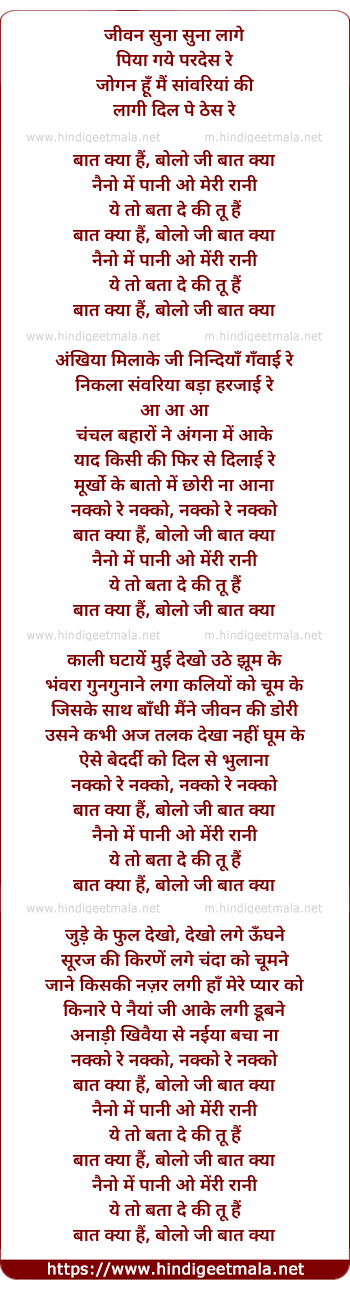 Lyrics: Noor Dewasi Music: Bipin Dutt Baat kya hai boloji...baat kya ...