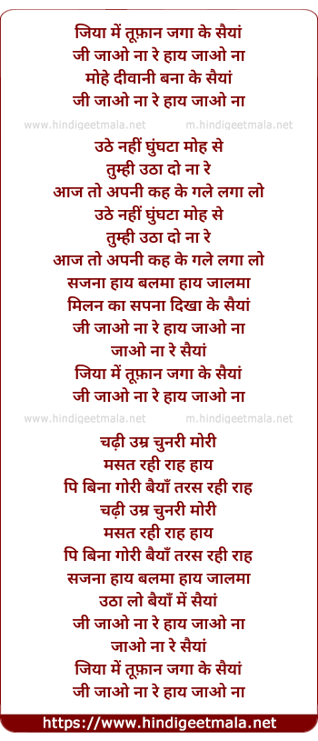 Lyrics of Jiya Me Toofan Jaga Ke - जिया में तूफ़ान जगा के