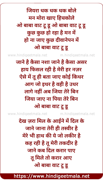 Lyrics of Jiyara Dhak Dhak Dhak Bole (What To Do) - जियरा धक धक धक बोले (व्हाट टू डू)