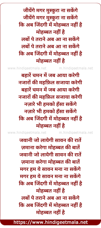 Lyrics of Jiyenge Magar Muskuraa Na Sakenge - जीयेंगे मगर मुस्कुरा ना सकेंगे