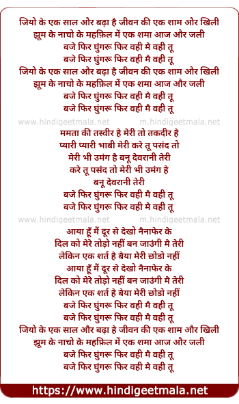 jhum ke nacho ke mahfil me ek shama aaj aur jali