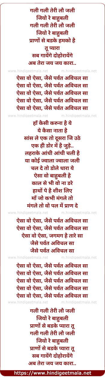 Lyrics of Jiyo Re Baahubali - जियो रे बाहुबली