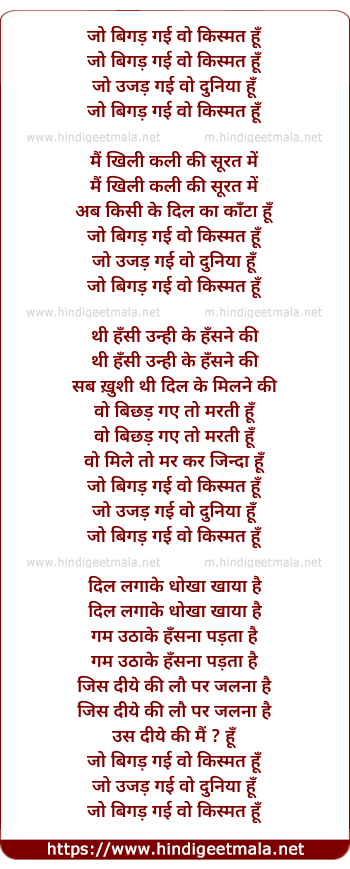Lyrics of Jo Bigad Gayi Woh Kismat Hu - जो बिगड़ गई वो किस्मत हूँ