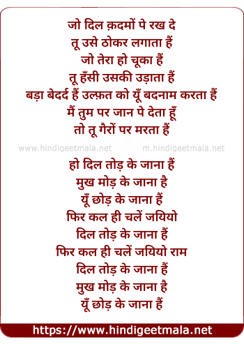 ho dil tod ke jana hai