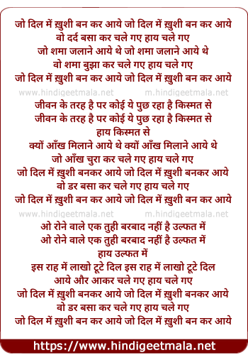 Lyrics of Jo Dil Me Khushi Ban Kar Aaye - जो दिल में ख़ुशी बन कर आये