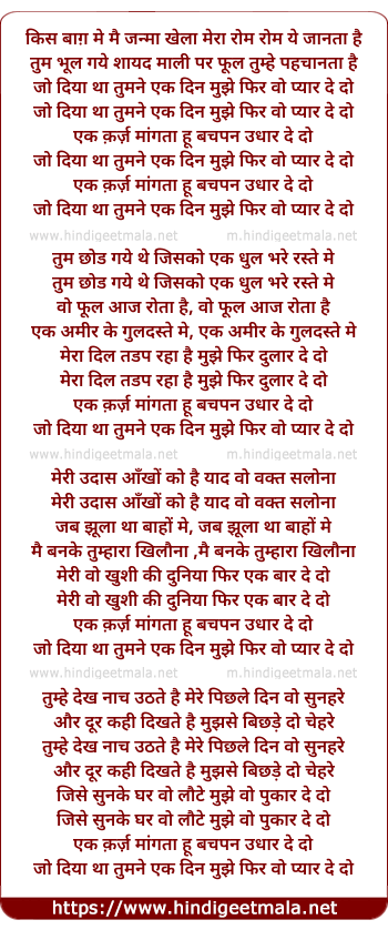 ek karz mangta hu bachpan udhar de do