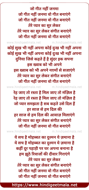 Lyrics of Jo Geet Nahi Janma - जो गीत नहीं जन्मा