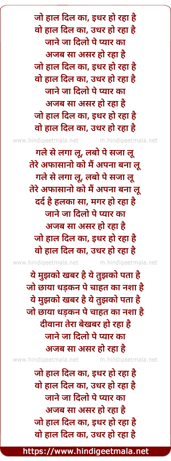 Lyrics of Jo Haal Dil Ka Idhar Ho Raha Hai - जो हाल दिल का इधर हो रहा है