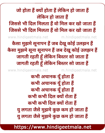 Lyrics of Jo Hota Hai (Female Version) - जो होता हैं क्यों होता हैं लेकिन हो जाता हैं