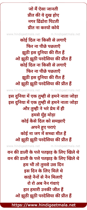 o jhuthi jhuthi pardesiya ki preet hai