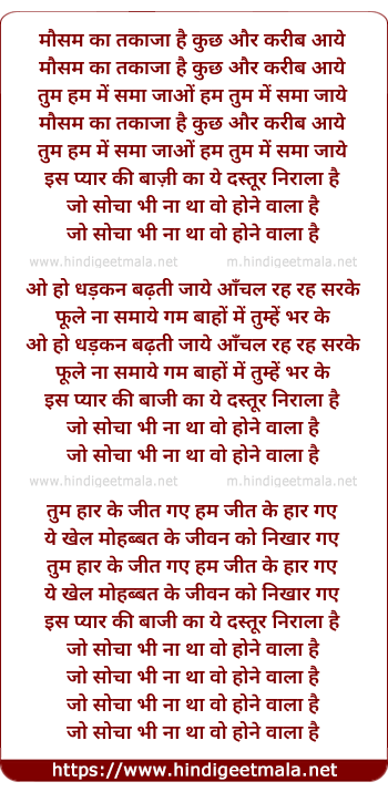 Lyrics of Jo Socha Bhi Na Tha (Mausam Ka Takaja Hai) - मौसम का तकाजा है कुछ और करीब आये