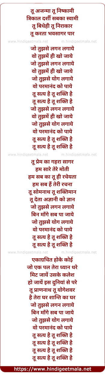 Lyrics of Jo Tujhse Lagan Lagaye - तू अजन्मा तू निष्कामी