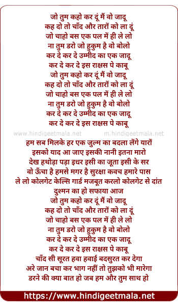 Lyrics of Jo Tum Kaho - जो तुम कहो कर दूं मैं वो जादू